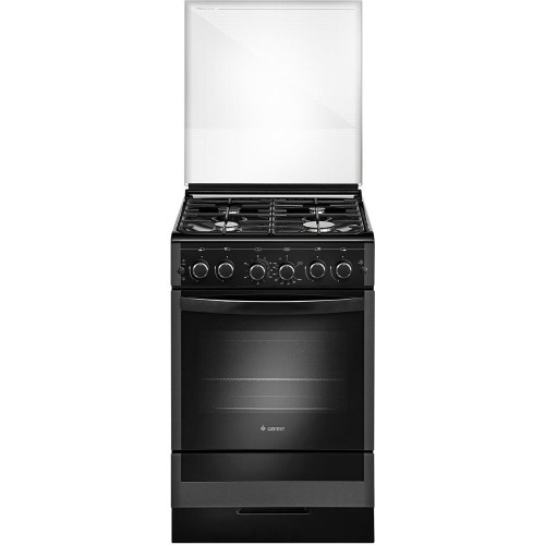 Габариты (ШхГхВ) 50x58,5x85 см. Объем духовки 52л. 4 газ. горелки. Электроподжиг горелок стола. Вароч. поверхность эмалированная. . Таймер механический. Газ-контроль духовки. Вертел с электроприводом. Подсветка духовки двойная. Направляющие духовки проволочные. Терморегулятор (термостат). Ящик для посуды и принадлежностей. Стекл. крышка. Фасад стеклянный черный с растровым рисунком.
