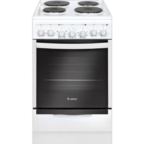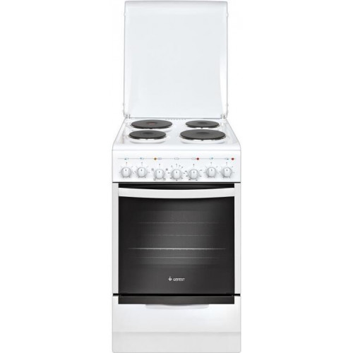 Габариты, ШхГхВ, см: 50x58.5x85; Цвет: белый; Дизайн: классический; Ширина, см: 50; Фасад: эмалированный; Варочная поверхность: эмалированная; Крышка стола: металлическая крышка; Количество зон приготовления: 4; Класс энергоэффективности: А; Диапазон номинальных напряжений, В: 220-230; Номинальная потребляемая мощность электроэнергии, кВт: 5,05-5,52; Объем духовки, л: 55; Мощность верхнего ТЭН духовки, кВт: 0,8; Мощность нижнего ТЭН духовки, кВт: 1,2; Управление: механическое; Таймер: электромеханический; Гриль: электрический; Подсветка духовки: одинарная; Направляющие духовки: съемные проволочные; Терморегулятор; Ящик для посуды и принадлежностей; выдвижной ящик; Ножки регулировочные; Сетевой шнур и вилка: в наличии; Комплектность: решетка духовки, жаровня 2 шт