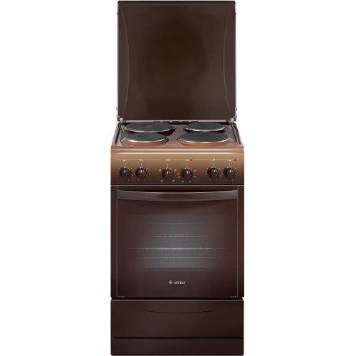 Размеры: 50х58.5х85 см. 4 конфорки. Объем духовки 52л. Экспресс-конфорка. Электрогриль. Подсветка духовки одинарная. Штампованные направляющие духовки. Регулировочные ножки. Коричневый эмалированный фасад.