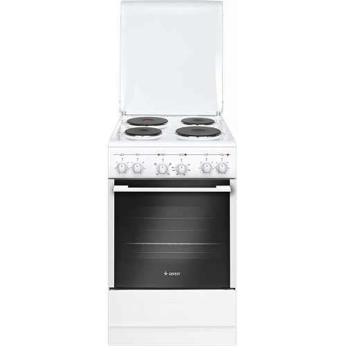 Размеры: 50х58.5х85 см. 4 конфорки. Объем духовки 52л. Экспресс-конфорка. Электрогриль. Подсветка духовки одинарная. Штампованные направляющие духовки. Регулировочные ножки. Белый эмалированный фасад.
