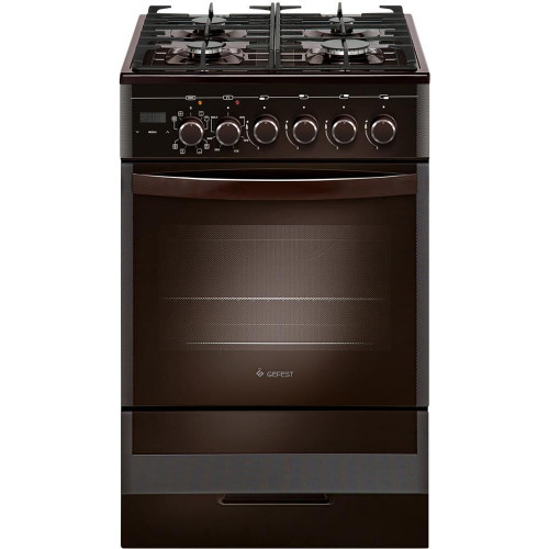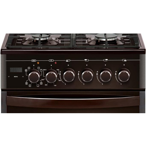 Габаритные размеры ШхГхВ: 50х58.5х85 см Полезный объём духовки: 52 л Цвет: коричневый. Варочная поверхность: стеклянная Духовка: электрическая Вертел с электроприводом, Таймер сенсорный, Выдвижной ящик, Терморегулятор (термостат, )Газ-контроль горелок стола, Ускоренный нагрев с конвекцией, Гриль электрический, Чугунные решетки, Ножки регулировочные, Шашлычница, Подсветка духовки одинарная, Электророзжиг горелок, встроенный в ручки, Проволочные направляющие
