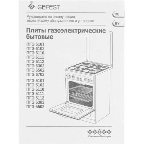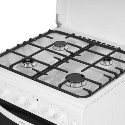(ШхГхВ) 60х60х85см. 4 газ. горелки. Электроподжиг горелок. Духовка газоэлектрическая, объем 52л. Газ-контроль духовки. Электророзжиг горелок стола/духовки, кнопка на парели. Терморегулятор. Вертел с электроприводом. Таймер механич. Цвет белый.