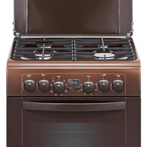Габариты (ШхГхВ) 60х60х85см.Цвет коричневый. Полезный объем 52л. 4 газ. горелки. Вертел с электроприводом Таймер электронный Выдвижной ящик для посуды и принадлежностей Терморегулятор (термостат) Газ-контроль горелок стола Ускоренный нагрев с конвекцией Гриль электрический Чугунные решетки горелок стола Ножки регулировочные Шашлычница Подсветка духовки двойная Электророзжиг горелок, встроенный в ручки Съемные проволочные направляющие духовки