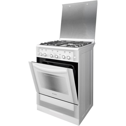 Габаритные размеры ШхГхВ: 60х60х85 см * Цвет: белый. Варочная поверхность: эмалированная. *Полезный объём духовки: 52 л * Вертел с электроприводом * Съемные проволочные направляющие духовки * Выдвижной ящик для посуды и принадлежностей * Таймер механический * Газ-контроль духовки * Терморегулятор (термостат) * Гриль * Чугунные решетки горелок стола * Ножки регулировочные * Электророзжиг горелок, кнопка розжига на панели * Подсветка духовки двойная * Электророзжиг духовки, кнопка розжига на панели *