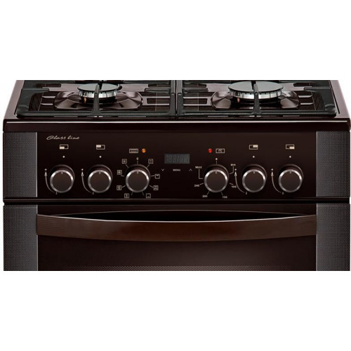 Газоэлектрическая плита. Габаритные размеры ШхГхВ: 60х60х85 см. Цвет: коричневый. Варочная поверхность: стеклянная. Объём духовки: 55 л.Вертел с электроприводом. Таймер сенсорный. Выдвижной ящик для посуды и принадлежностей. Терморегулятор (термостат). Газ-контроль горелок стола. Ускоренный нагрев с конвекцией. Гриль электрический. Чугунные решетки горелок стола. Ножки регулировочные. Шашлычница. Подсветка духовки двойная. Электророзжиг горелок, встроенный в ручки. Съемные проволочные направляющие духовки.