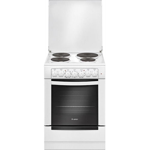 Габариты, ШхГхВ, см: 60x60x85; Цвет: белый; Дизайн: классический; Ширина, см: 60; Фасад: эмалированный; Варочная поверхность: эмалированная; Крышка стола: металлическая крышка; Количество зон приготовления: 4; Класс энергоэффективности: А; Диапазон номинальных напряжений, В: 220-230; Номинальная потребляемая мощность электроэнергии, кВт: 6,02-6,58; Объем духовки, л: 55; Конвекция; Мощность верхнего ТЭН духовки, кВт: 0,8; Мощность нижнего ТЭН духовки, кВт: 1,2; ТЭН-гриль: 1,2; Управление: механическое; Таймер: электромеханический; Гриль: электрический; Ускоренный гриль с ковекцией; Подсветка духовки: двойная; Направляющие духовки: съемные проволочные; Терморегулятор; Ящик для посуды и принадлежностей: выдвижной ящик; Ножки регулировочные; Сетевой шнур и вилка: в наличии; Комплектность: решетка духовки, жаровня 2 шт