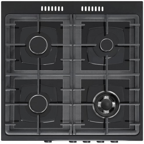 Габариты, ШхГхВ, см: 60x60x85; Цвет: черный; Дизайн: классик; Ширина, см: 60; Фасад: закаленное стекло; Варочная поверхность: закаленное стекло; Решетки стола: чугунные; Класс электробезопасности: I; Объем духовки, л: 52; Мощность горелки духовки, кВт: 3,1; Мощность гриль-горелки, кВт: 1,9; Таймер: многофункциональный, сенсорный; Двухзонная горелка; Газ-контроль духовки; Газ-контроль горелок стола; Электророзжиг духовки: встроен в ручку; Электророзжиг горелок стола: встроен в ручки; Гриль: газовый; Вертел с электроприводом; Шашлычница; Подсветка духовки; Направляющие духовки: съемные проволочные; Терморегулятор (термостат); Ящик для посуды и принадлежностей: выдвижной; Ножки регулировочные; Сетевой шнур и вилка: в наличии; Стекло дверцы духовки: двойное; Комплектность: жаровня, накладка для посуды малого диаметра, противень, решетка духовки; Комплект сменных сопел