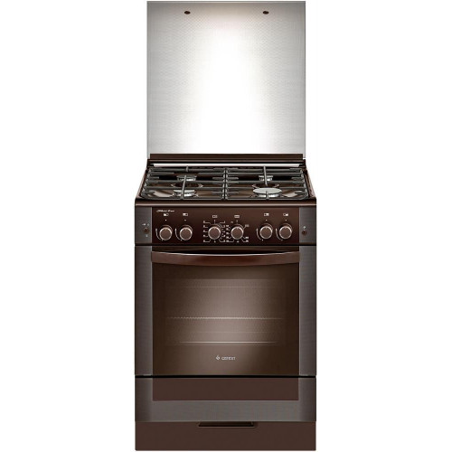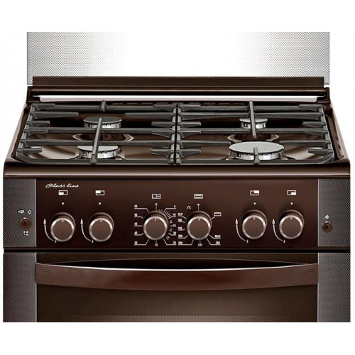 Габариты, ШхГхВ, см: 60x60x85; Цвет: коричневый; Дизайн: классик; Ширина, см: 60; Фасад: закаленное стекло; Варочная поверхность: эмалированная; Решетки стола: чугунные; Крышка стола: стеклянная; Класс электробезопасности: I; Объем духовки, л: 52; Мощность горелки духовки, кВт: 3,1; Мощность гриль-горелки, кВт: 1,9; Таймер: механический; Газ-контроль духовки; Электророзжиг духовки: кнопка на панели; Электророзжиг горелок стола: кнопка на панели; Гриль: газовый; Вертел с электроприводом; Подсветка духовки; Направляющие духовки: съемные проволочные; Терморегулятор (термостат); Ящик для посуды и принадлежностей: выдвижной; Ножки регулировочные; Сетевой шнур и вилка: в наличии; Стекло дверцы духовки: двойное; Комплектность: жаровня, противень, решетка духовки; Комплект: Сменных сопел