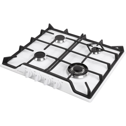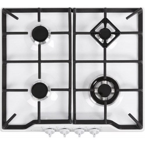 Габаритные размеры ШхГхВ: 59х52х9 см * Цвет: белый. Варочная поверхность: эмалированная * Газ-контроль горелок стола * Чугунные решетки горелок стола * Двухзонная горелка * Электророзжиг горелок, встроенный в ручки * Фиксированное положение «малое пламя» *