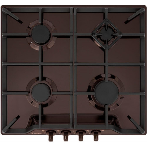 Ширина, см 59, Глубина, см 52. Цвет модели Коричневый. Материал варочной поверхности Эмаль. Материал решеток варочной поверхности Чугун. Газ-контроль горелок стола. Электророзжиг горелок стола -Розжиг встроен в ручки. "Фиксированное положение ""малое пламя"". Размеры монтажного проема, ШхГ, см 56 х 50