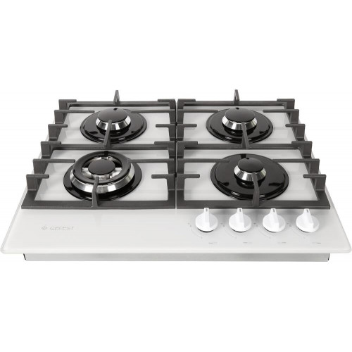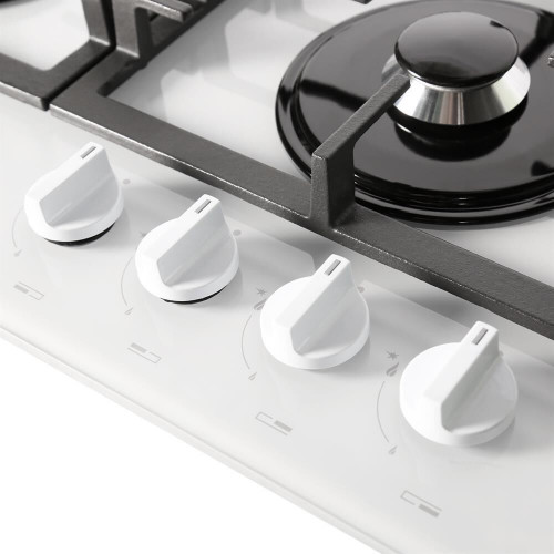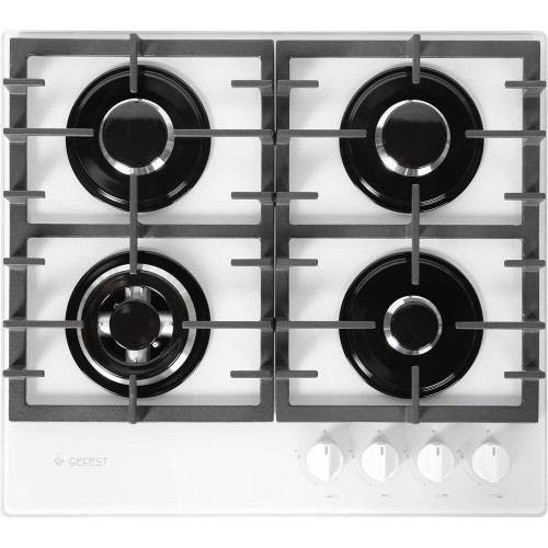 Размеры монтажного проема, ШхГ, см 55,4 х 48,6. Ширина, см 60. Глубина, см 52,5. Высота, см 10. Цвет модели Белый. Материал варочной поверхности Стекло. Материал решеток варочной поверхности Чугун. Двухзонная горелка варочной поверхности. Газ-контроль горелок стола. Электророзжиг горелок стола встроен в ручки. Управление конфорками стола Механическое. "Фиксированное положение ""малое пламя"".