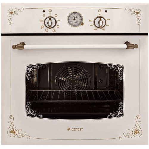 Духовой шкаф. Цвет: кремовый с рисунком "ретро". Габаритные размеры ШхГхВ: 59.8х56.5х59.5 см. Объём духовки: 55 л. Гриль электрический. Таймер аналоговый. Подсветка духовки двойная. Усиленный гриль с конвекцией. Съемные проволочные направляющие духовки. Масса нетто, 33,1кг. Диапазон номинальных напряжений, В: 220-230. Фасад: эмалированный. Сетевой шнур и вилка: в наличии. Класс электробезопасности: I.