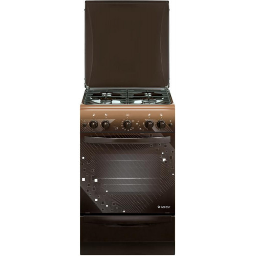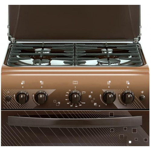 Габариты: 50х58.5х85см. 4 газ. горелки. Духовка газовая. Полезный объем духовки 52л. Газ-контроль духовки. Электророзжиг горелок стола/духовки. Терморегулятор. Гриль-горелка. Проволочные направляющие духовки. Цвет коричневый.