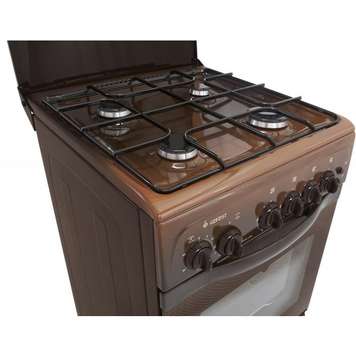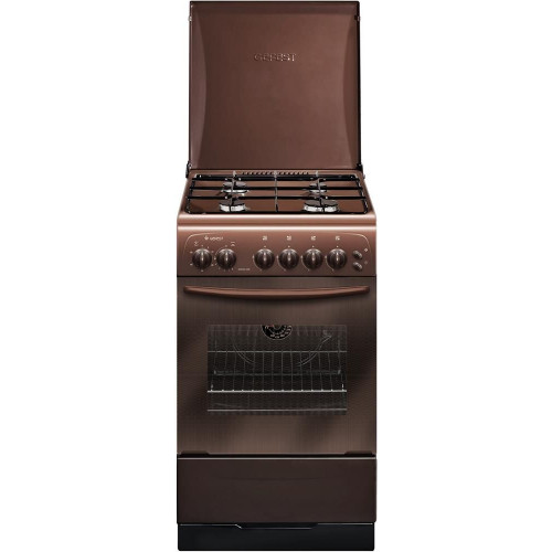 Габариты ШхГхВ, см: 50x57x85; Цвет: коричневый; Объем духовки, л: 42; Количество зон приготовления: 4; Варочная поверхность: эмалированная; Фасад: эмалированный; Крышка: металлическая; Класс электробезопасности: II; Выдвижной ящик для посуды и принадлежностей; Таймер механический; Газ-контроль духовки; Термоуказатель духовки; Ножки регулировочные; Штампованные направляющие духовки; Подсветка духовки: одинарная; Электророзжиг горелок, кнопка розжига на панели; Стальные решетки горелок стола